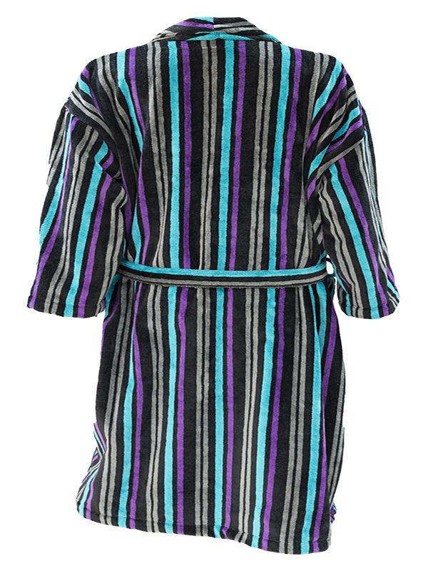 Bathrobe – Velour – Shawl Collar – Stripes Black MultiColor