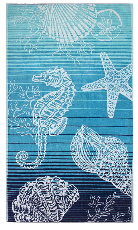Beach Towel 0800 – Design 006 – 100x180cms – Sea Dragon & Star Fish – Blue Atoll